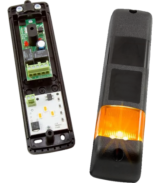 Die SLIMFLASH wurde für den Einsatz in Toranlagen als zuverlässiges Sicherheitselement entwickelt. Sie ist mit einem integrierten Lampenmodul ausgestattet, das mit orangefarbenem Schirm als deutlich sichtbare Signalleuchte dient.