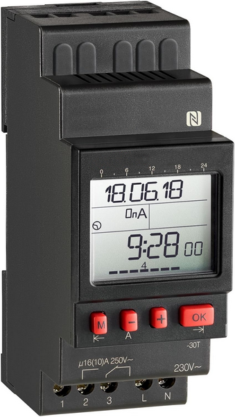 Es zeigt das gesamte Schaltprogramm des aktuellen Tages auf einen Blick und verfügt über eine austauschbare Batterie (CR 2032) mit einer beeindruckenden Gangreserve von zehn Jahren. Durch den optimierten Eigenverbrauch von nur 0,2W im Standby-Betrieb arbeitet es besonders energieeffizient.