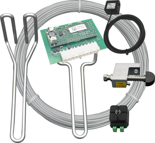 Mit dem Zusatzmodul ISK 70-755 (Schiebetoranwendung) können bis zu zwei mitfahrende Sicherheitskontaktleistenkreise angeschlossen und richtungs-abhängigausgewertet werden. Diese Sicherheitskontaktleisten werden über das Seilübertragungs-system verschleißfrei ausgewertet.